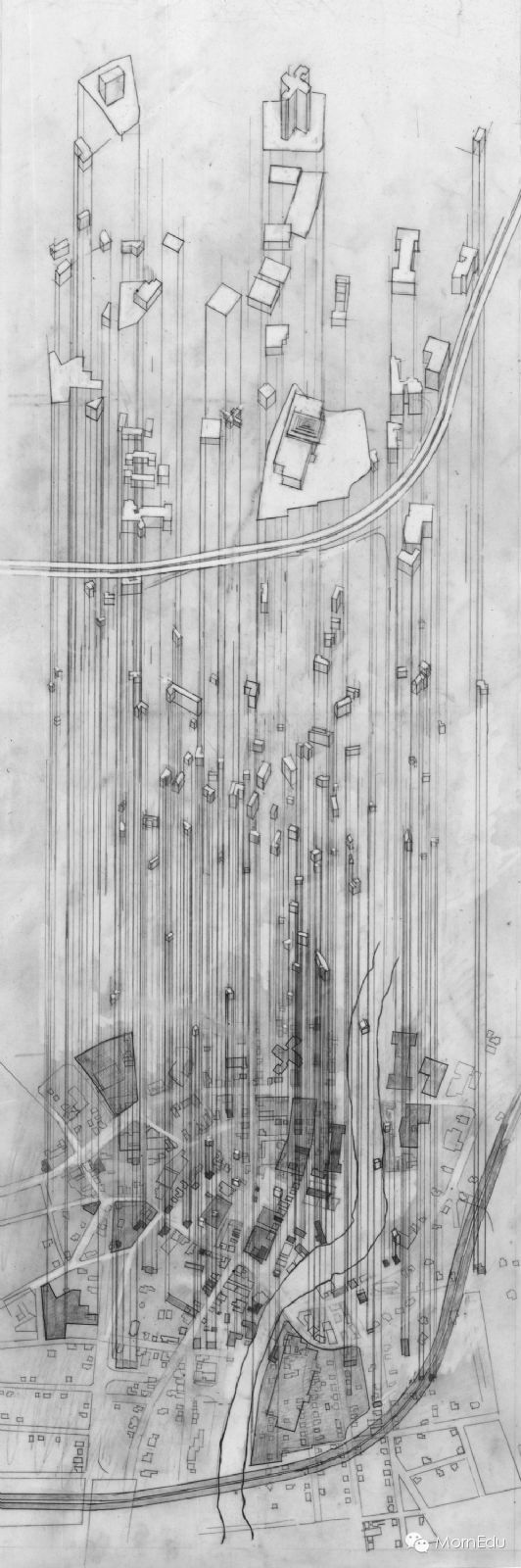 除了建筑的高差和密度,建筑肌理中最后一个点就是建筑的体块形态。 不是必须表达的东西。需要的时候可以像这样: