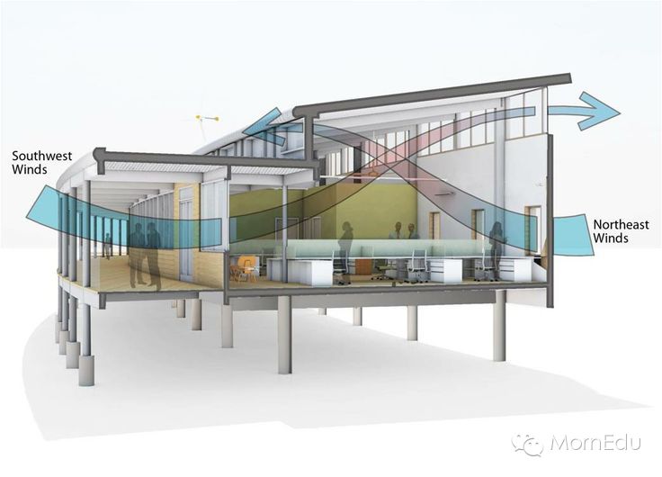 许多设计的核心概念是围着通风技术而形成的, 这样的情况下,整个作品的表达可能是这样: