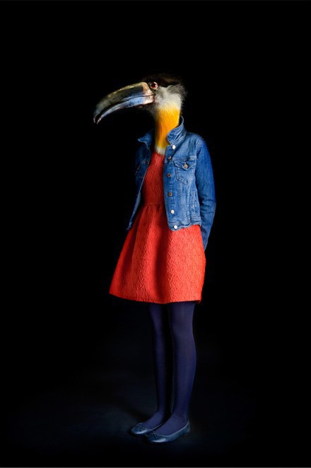 西班牙摄影师Miguel Vallinas多才多艺,他最近创作了一系列相当非凡、令人震惊的作品:高端时装摄影和动物肖像混搭。他称这一系列的作品为“第二皮肤(Second Skins)”,把形形色色的生有羽毛、皮毛或蹄子之类的动物穿上时下最时髦的衣装。通过非常小心的适度的修整后,他的作品就能给人一种视错