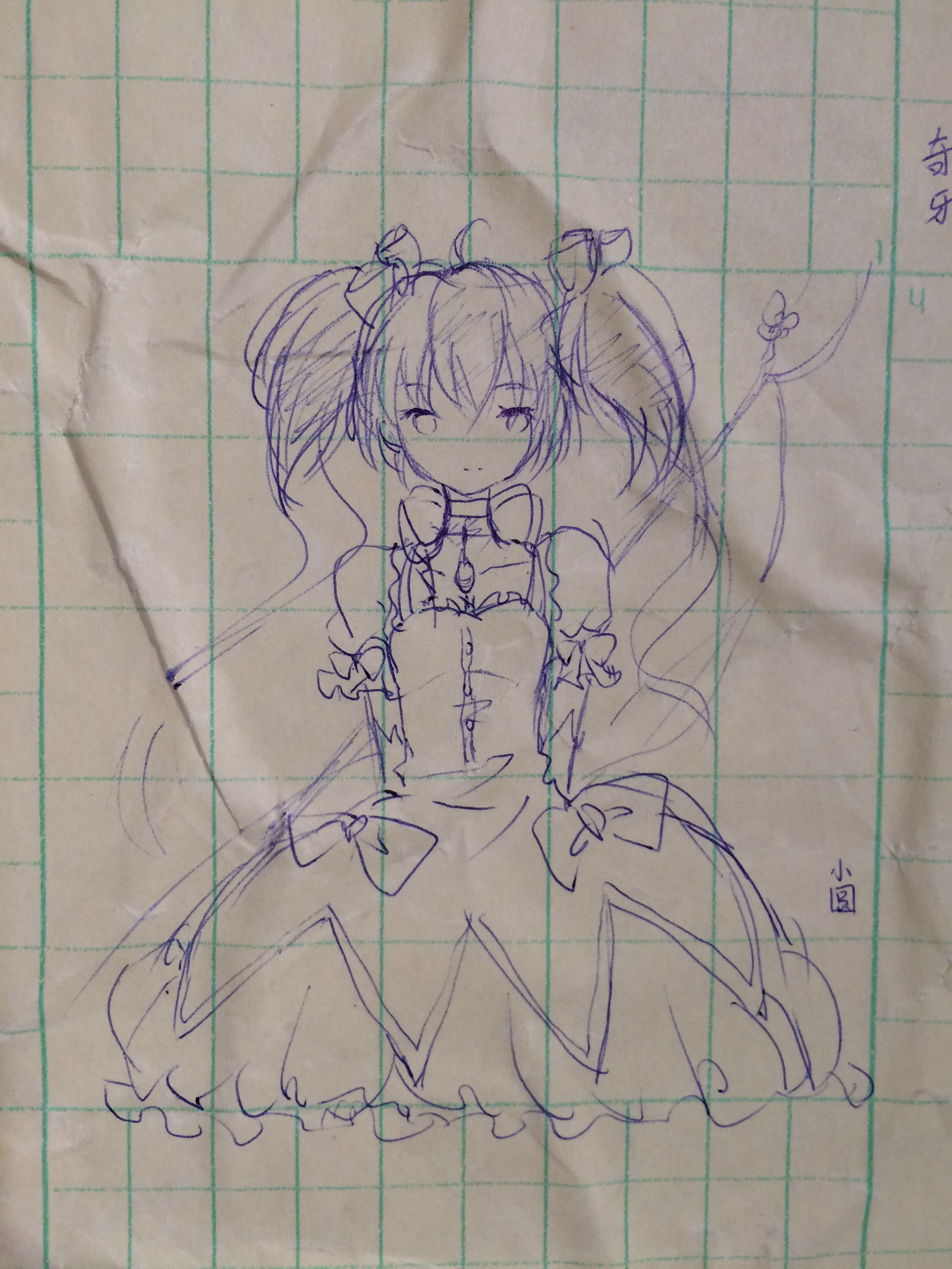 因为是直接画上去的,没打稿所以魔法棒画成了魔法杖QAQ