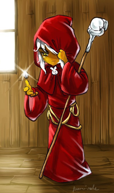 特征:终年裹着黑色的法师长袍,表情深深隐蔽在兜帽之下。淡金色的皮肤散发着黯淡的光芒,苍白的头发,枯瘦病态的脸庞活像无底深渊里爬出来的丧尸。就连眼睛也不像任何活物——深邃的沙漏状的瞳孔散发着诡异的金色光芒,可以清晰地看到时间的流逝。随时发作的咳嗽让他长期弓着背,勉强依靠着玛吉斯法杖支撑身体,似乎随便一阵轻风都可以让他命丧黄泉。然而在长长的法师袍下,一颗叛逆、冷酷的心却在强有力地跳动,瘦弱的身体中隐藏着与其健康不相符的魔法力量……