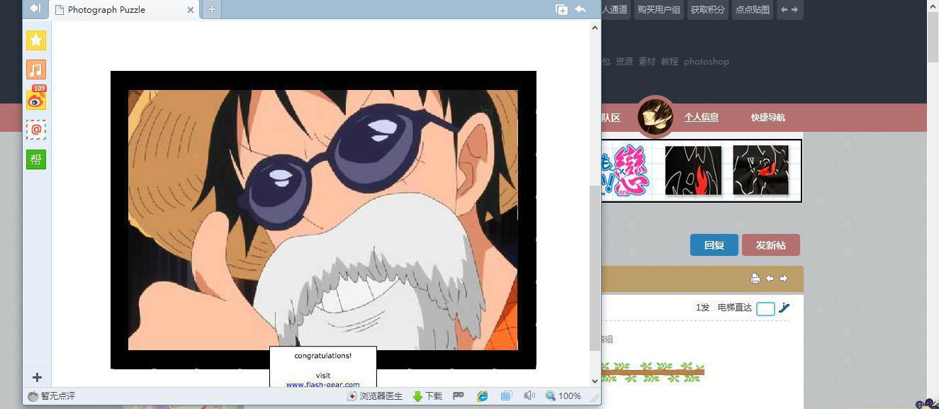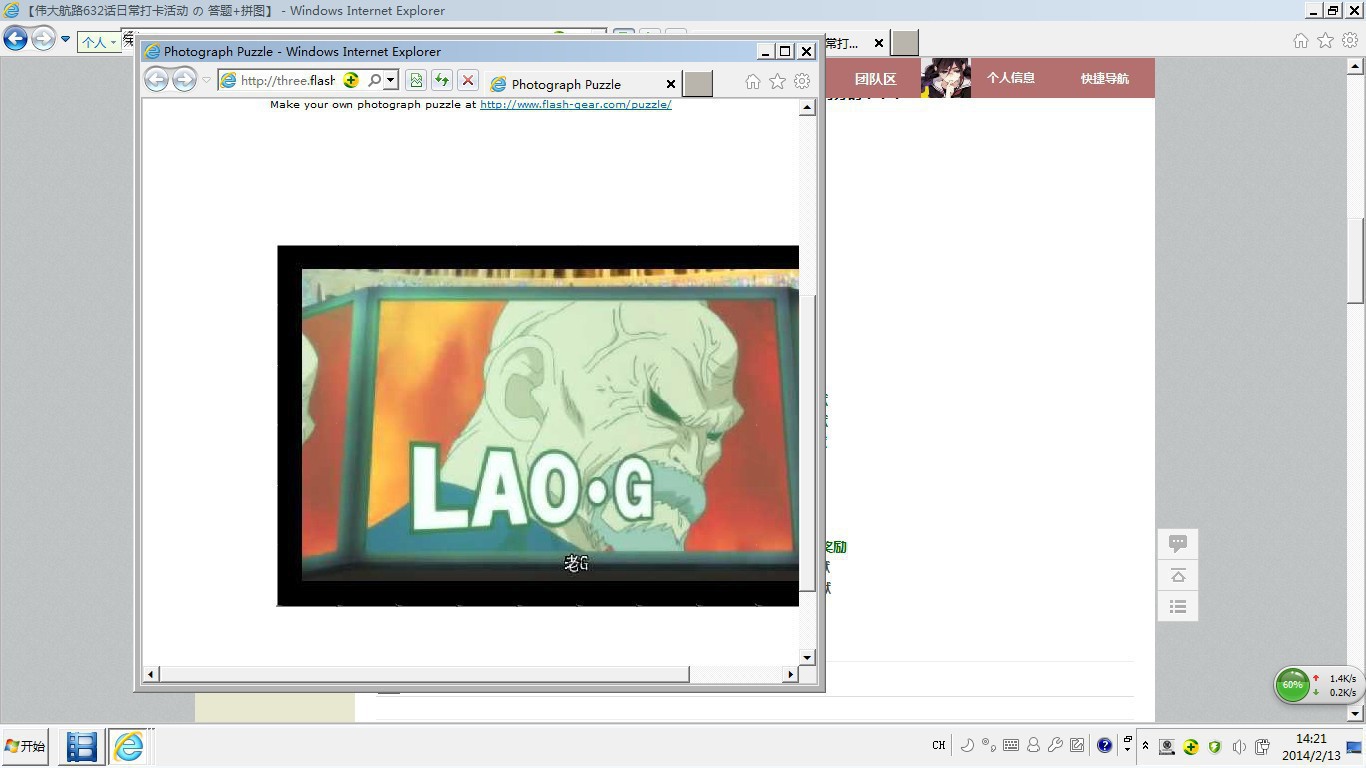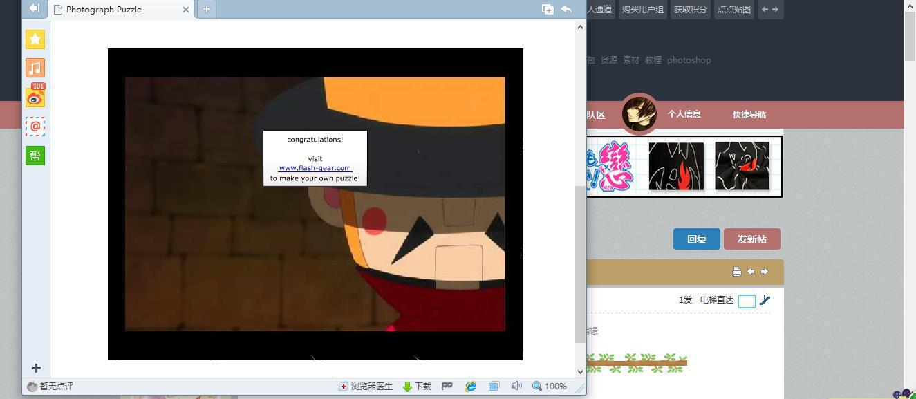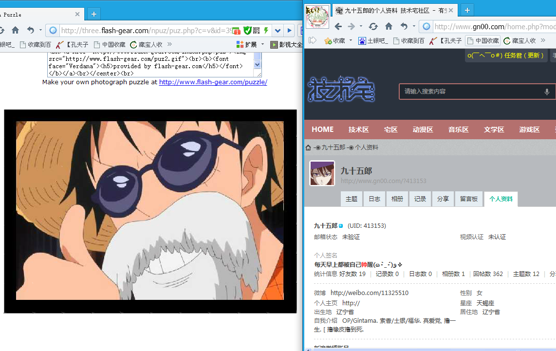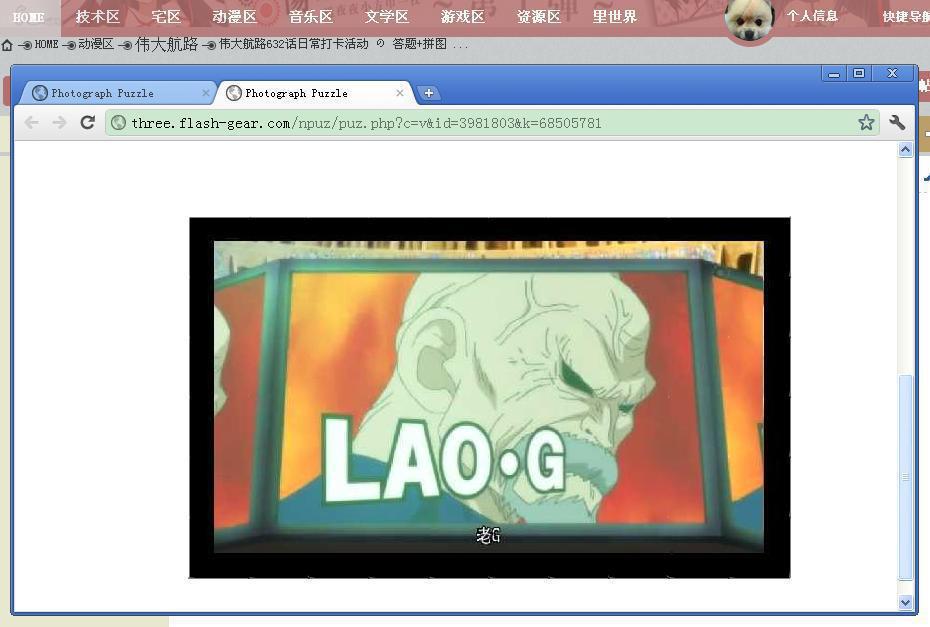 第一次参加这个活动,想了好久“请另开一个网页将所拼好的完整的图片连同你在基宅的个人信息一同截取”到底是怎么截啊。。。另开一个什么网页啊。。。/(ㄒoㄒ)/~~ 拼图的么 新开又是乱的呀。。。于是我先把拼好的截下来和个人信息放在一起。。。我特么奏似逗比。。。_(:з」∠)_