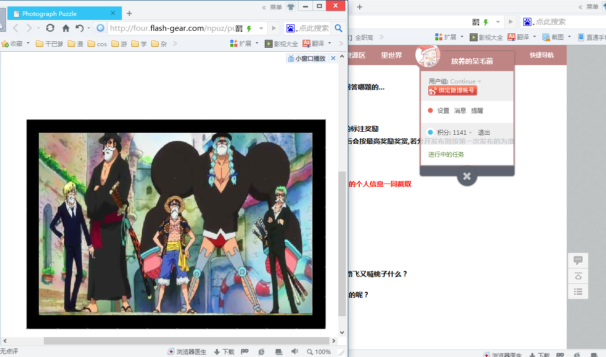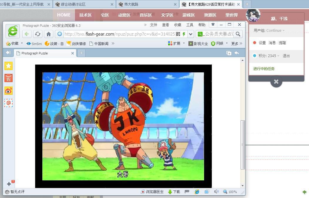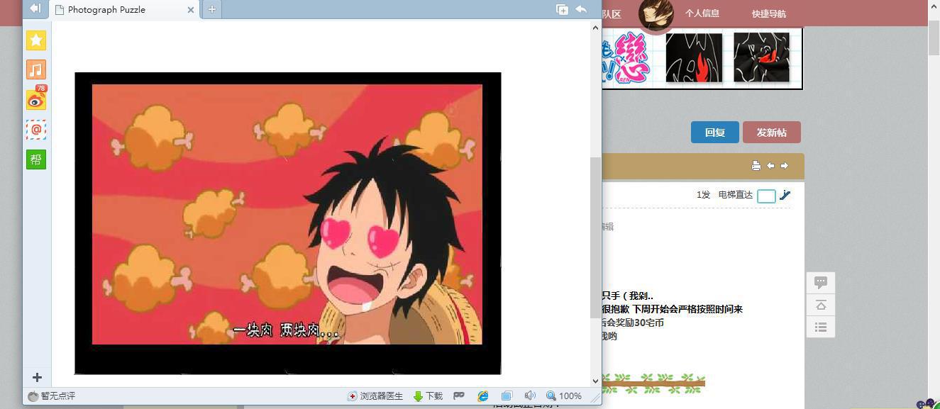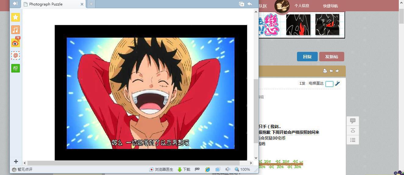 伟大航路629话日常打卡活动 の 答题+拼图近几周的活动都有延迟 实在抱歉楼主也是到了考试月 本想请假的 可是又管不住这只手(我剁..近几次的都稍微拖了一天+本人特殊原因 基本是延迟了2天的样子 鞠躬 很抱歉 下周开始会严格按照时间来另外感谢@winiso 同学对伟大航路的督促=3= 稍后会奖励30宅币别的同学们有什么意见和建议也可以私信我哟裴恩熙 致