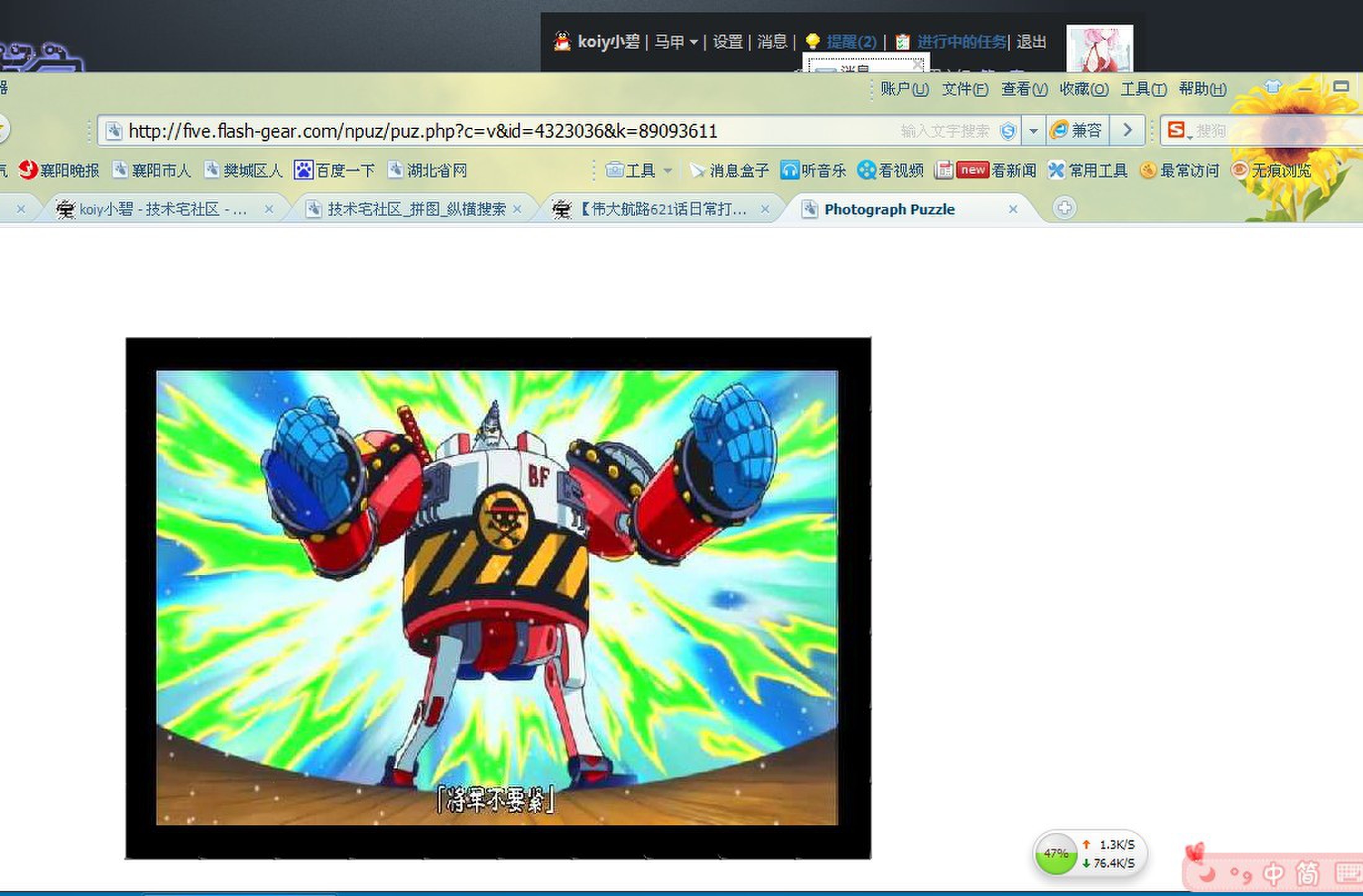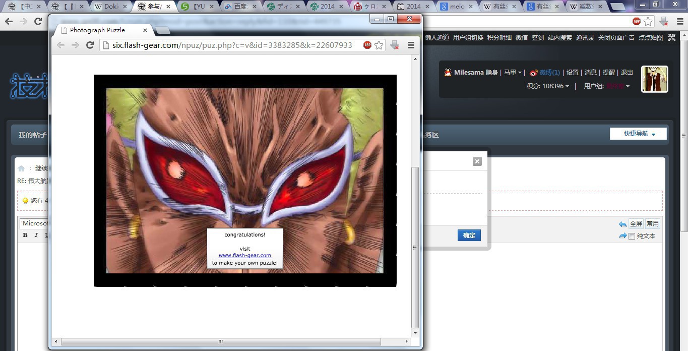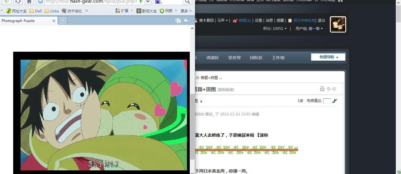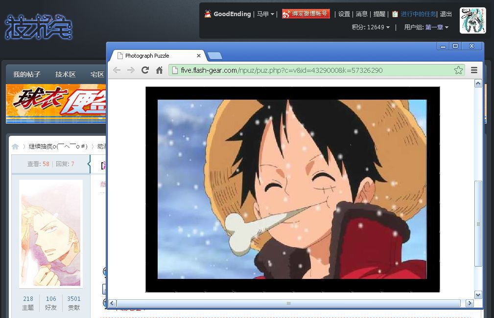 ▪ 开启两个浏览器窗口,把你完成的拼图和技宅信息栏截在一起。