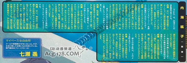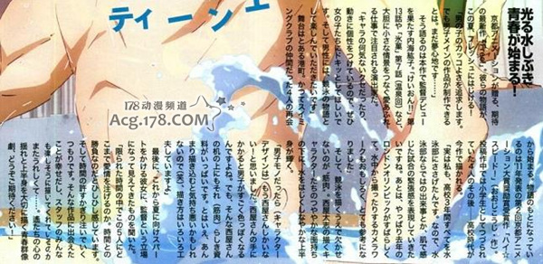 ·每个角色都会在一举一动的不经意间流露出自己的性格和个性,希望女性观众能觉得心动。也希望男性观众会喜欢这部游泳运动的动画