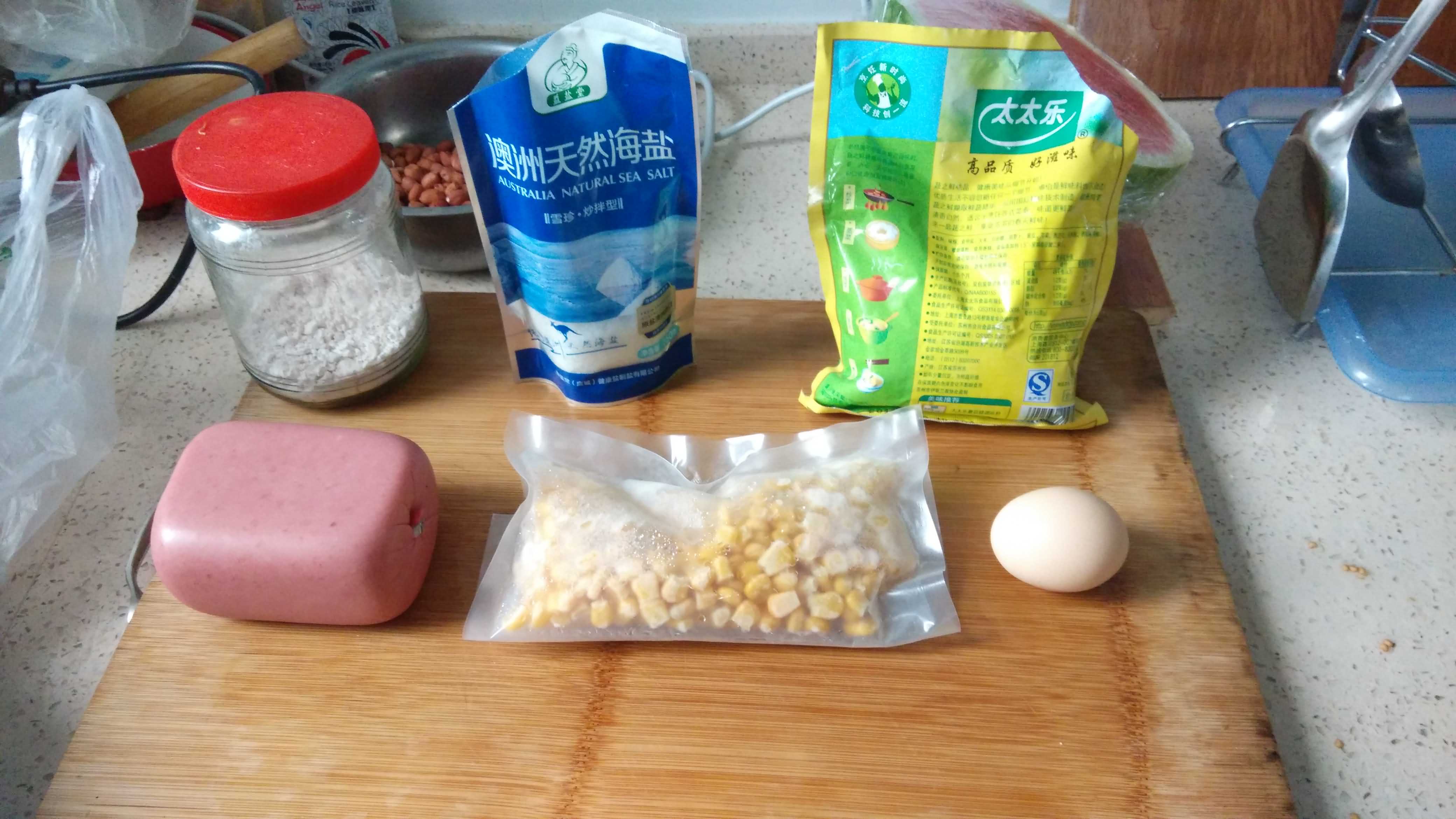 喵酱:原材料就是午餐肉、玉米和鸡蛋,调味料是鸡精和盐,根据喜好放一点胡椒粉也是极好的。此外还需要大量的水淀粉。