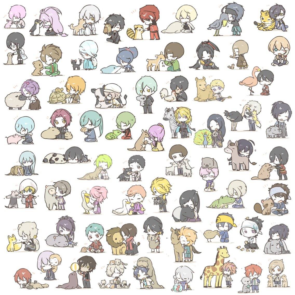 辛巴)、太郎太刀、萤丸(萤总吹爆)、陆奥守吉行小狐丸(狐球)、不动行光(小酒鬼)、山伏国広(卡卡卡)、加州清光、长曾祢虎彻 、骚速剑、三日月宗近(爷爷)、日本号(号叔)、大和守安定(二号机?)