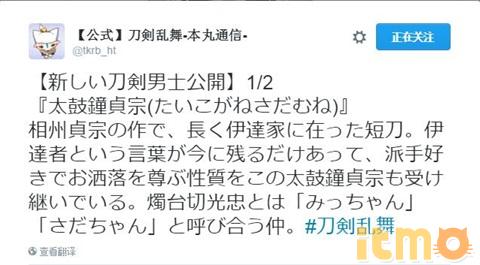 刀剑乱舞新刀剑男士:太鼓钟贞宗情报公开!备受关注的新刀剑男士终于公开了庐山真面目!刀剑乱舞官方推特在今天(6月22日)下午公开了新刀剑男士太鼓钟贞宗(太鼓鐘貞宗),虽然实装时间未定,但相信为时不远了!