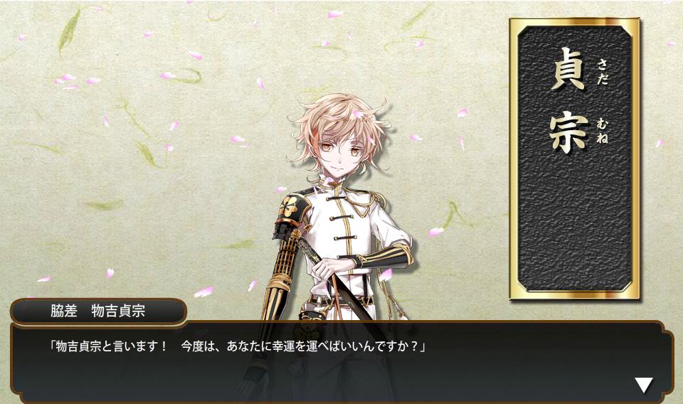 由相州贞宗所作,长期位于伊达家的短刀。不愧有“伊达者”这样的说法流传至今,花俏、好打扮的性质被这个太鼓钟贞宗给继承下来了。和烛台切光忠有着能互相称呼昵称“みっちゃん”、“さだちゃん”的关系。
