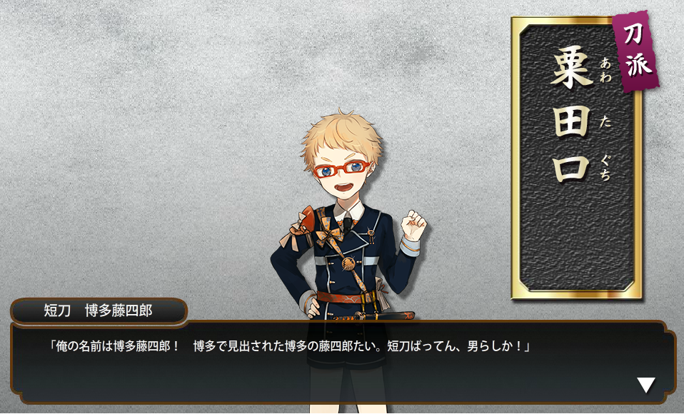 薬研藤四郎、乱藤四郎、堀川国広、鯰尾藤四郎、骨喰藤四郎、厚藤四郎 / 炬太郎