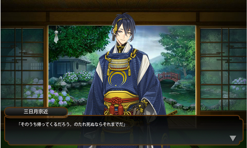 嘛~明天就开三日月的近侍专用曲了,全新的活动版本肯定是要更新的,说不定到时候你就能刷进去了