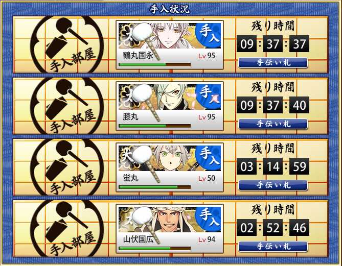 啧啧啧 四间手入屋好壮观 @@33!! 梅雨好看 然而我才败光小判。。