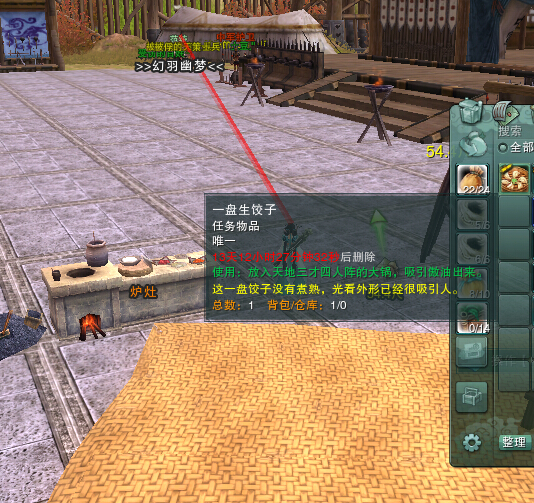 ④走到炉灶这里,右键背包里的【一盘生饺子】,遨游就被引出来了