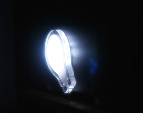 创意设计作品展示.jpg创新型工业设计师Dmitry Agurkov设计的LED灯由透明亚克力材质制成,没有一个可见的控制按钮,而是通过灯片上的两个特俗区域的触摸来控制,分为白光控制区域和色彩模式控制区。整个灯光绚丽迷幻,十分漂亮。