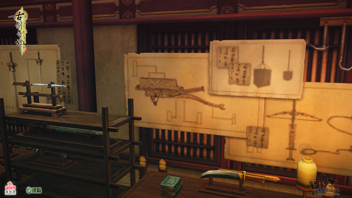 身为偃师,《古剑奇谭二》男主角乐无异拥有一间自己的偃甲房。今天我们就带大家去乐无异的偃甲房一探究竟,看看偃师的房间内究竟有怎样的秘密。乐无异的偃甲房内,最醒目的莫过于这巨大的齿轮形工具。乐无异对偃甲之术该是相当痴迷的,不仅偃甲房内充斥着偃术元素,房间外也到处摆放着偃甲工具。一迈入乐无异的房间,就可以见到摆放在房间正中央的齿轮,看得出乐无异对偃术是真心喜爱。就连卧房的一角都放置了工作台,便于他钻研偃甲和偃术。[查看全文]乐无异房间内景二