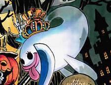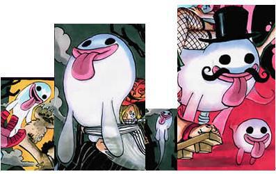 这是典型的HALLOWEEN造型,但是,仔细看那些个幽灵!明明就是佩罗娜的幽灵造型啊!~虽然OP里面除了佩罗娜的幽灵之外没有出现过其他的幽灵了,但是作为WT这样的作者来说,就连造型雷同的问题都不会有那更不可能会在卷首扉页画上面犯这样的错误!~