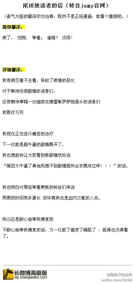 WT大神生病了,首先当然希望大神能够尽快康复,身体最重要!【克制漫画断档的怨念脸…@8#