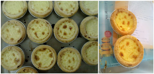 这是蛋挞~带去教室然后被抢光了貌似味道不错!!【我只吃了一个啊!!