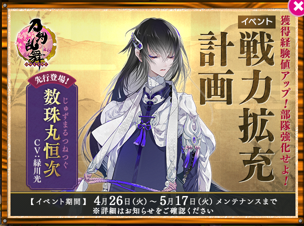 《刀剑乱舞-ONLINE-》从2016年4月26日起开始举行第三回的“戦力拡充計画(战力扩充计划)”活动。