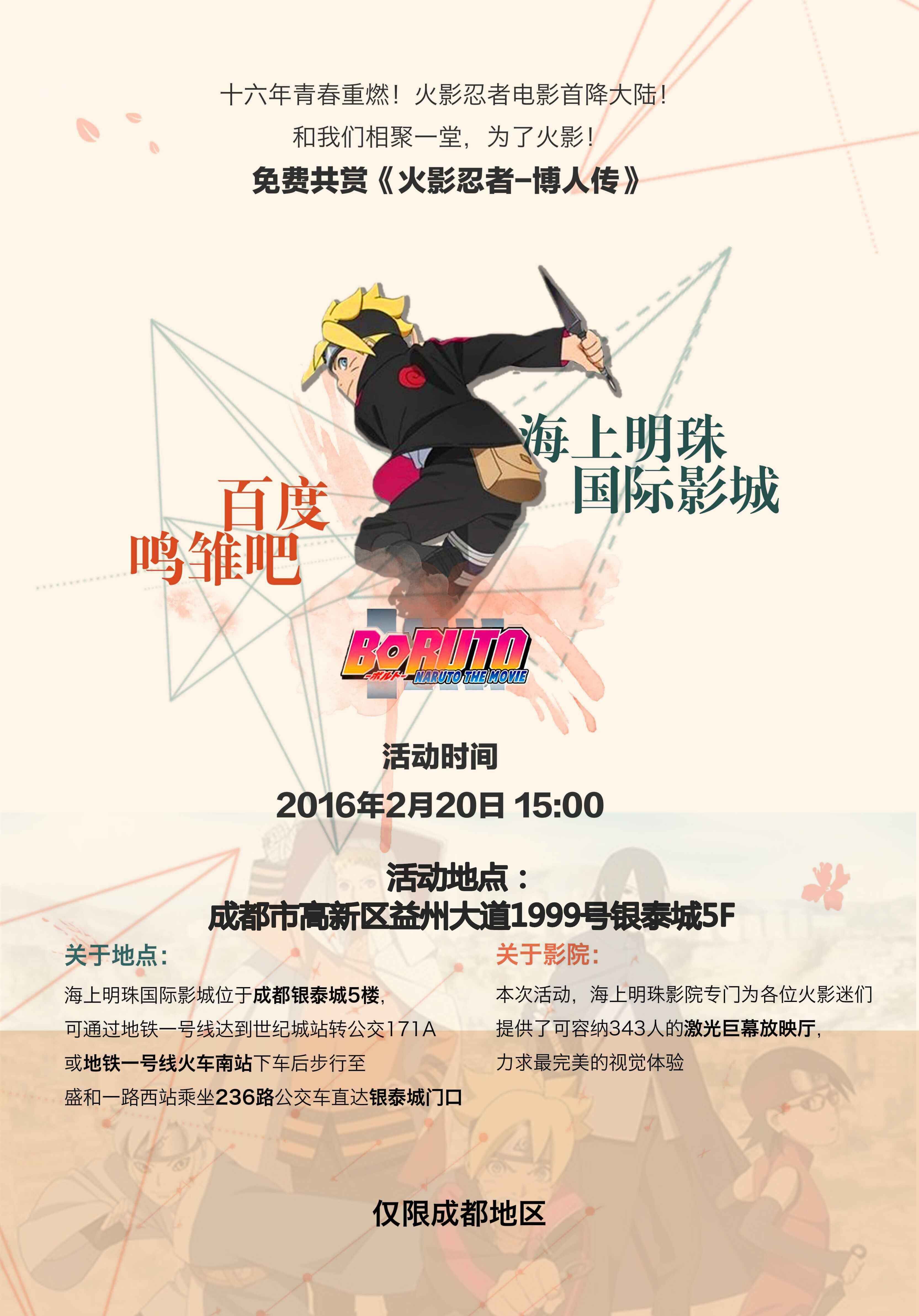 邀请成都及其周边地区的火影迷们免费看《火影忍者—博人传》
