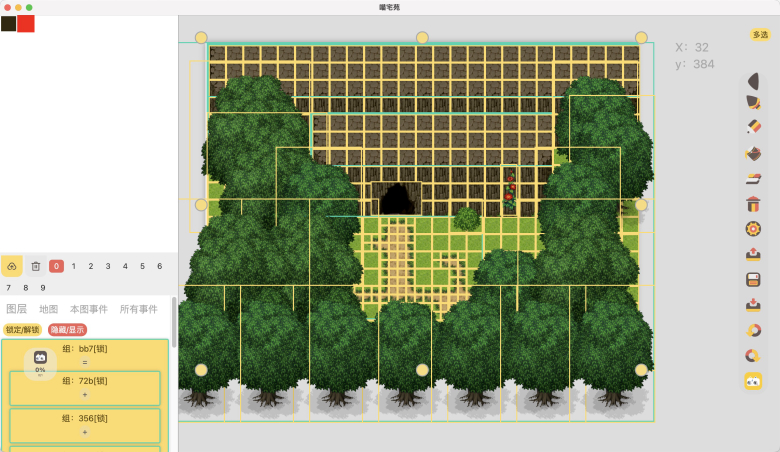 同时还实现了33大格的通用图块绘制,你在绘制素材里的山地,栅栏,等类似规格的素材会特别方便