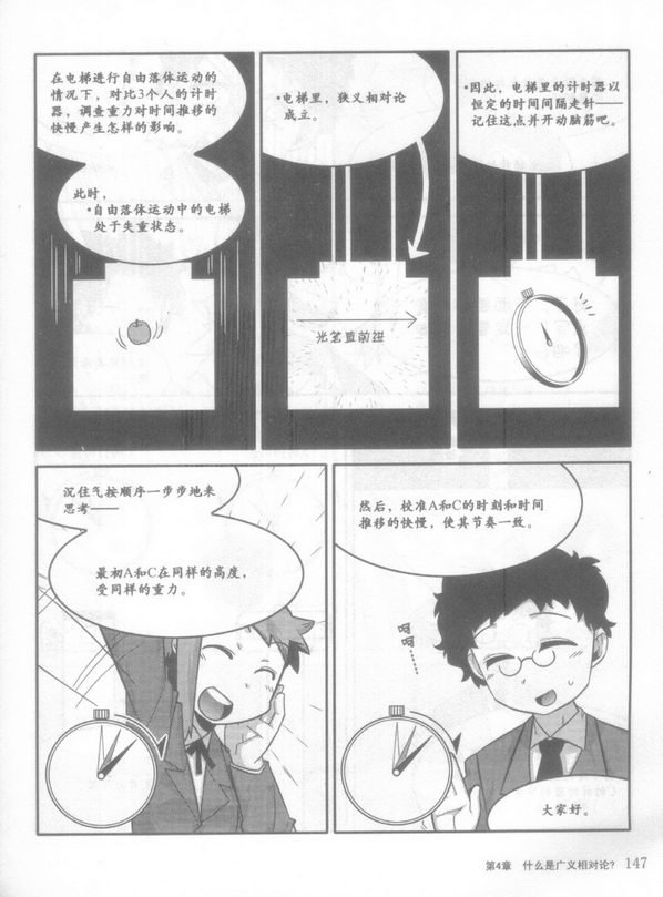 序章 出乎意料的结业典礼 第1章 什么是相对论? 1.何为相对论 2.伽利略相对性原理和牛顿力学 3.光速之谜 4.爱因斯坦抛弃牛顿力学 补充说明 关于光 每天都在验证“光速恒定原理”(SPing-8) 同时不再是同时?(同时性的相对性) 伽利略相对性原理和伽利略变换 伽利略相对性原理与爱因斯坦狭义相对论原理的不同 小专栏:速度怎样合成? 第2章 时间延缓是怎么回事? 1.浦岛效应 2.为什么时间会变慢? 3.时间延缓也是彼此彼此 4.用算式来看时间变慢 补充说明 应用勾股定理证明时间延缓的算式 小专栏:时间会延缓多少? 第3章 运动加快则缩短变重? 1.运动加快则长度缩短? 2.运动加快则质量变大? 补充说明 用公式看长度的缩短(洛伦兹收缩) μ介子寿命变长 运动时的质量 能量和质量的关系 光的质量为零? 第4章 什么是广义相对论? 1.等效原理 2.光因为重力而弯曲 3.时间因为光而延缓 4.相对论与宇宙 补充说明 广义相对论里的时间延缓 广义相对论中重力的本质 由广义相对论推导出的现象 GPS与相对论
