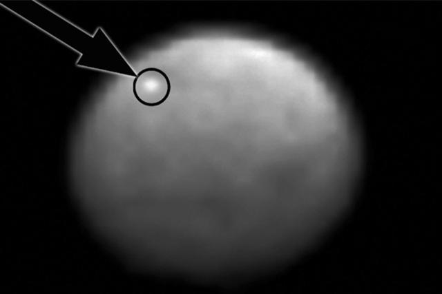 “黎明”号探测器拍摄到神秘的亮斑,美国宇航局并没有说明这是何种物质据国外媒体报道,美国宇航局“黎明”号探测器预计在一个月后进入谷神星轨道,目前距离谷神星大约20多万公里,科学家在探测器传回的照片中发现了一个奇怪的白色斑点,这是谷神星上一处神秘的反光信号。“黎明”号探测器在1月13日向地球传回了最新拍摄的谷神星照片,前几天美国宇航局对外发布了这些图像,但其中有一张存在白色亮点,科学家也没有说明这个亮点是如何形成的。因此,关于这个白色亮斑的猜想开始增多,有分析认为这可能是谷神星水冰物质的反射。