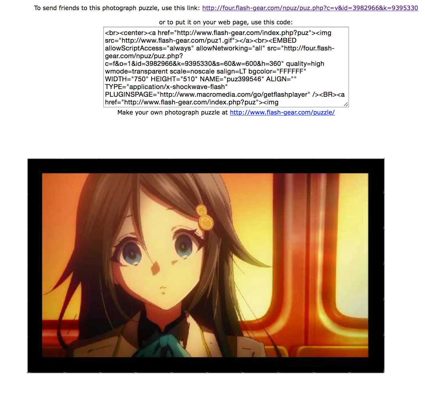 本帖最后由 叮当。 于 2016-1-29 21:42 编辑 拼图截图方法有以下三种,三选一:1.剩下最后一块不拼,截下未完成的拼图;2.开启两个浏览器窗口,把拼图和技宅信息栏截在一起;3.拼完图后把完成的拼图和自动弹出的小广告一起截下。拼图三选一,奖励不叠加拼多张的按最高等级发糖。可以用小号拼其余两块。截止时间为下次日常更新之前