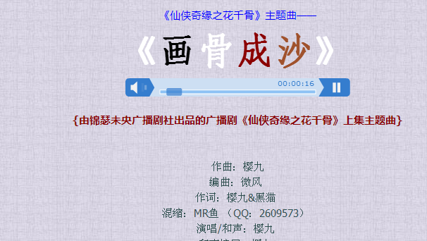 {由锦瑟未央广播剧社出品的广播剧《仙侠奇缘之花千骨》上集主题曲}