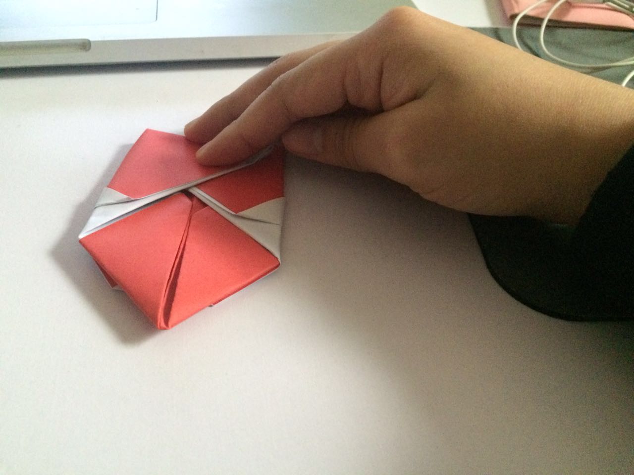 5、我们打开小角对着小角的线折。6、然后压好。7、我们把对面的角对其顶线折好。[查看全文]