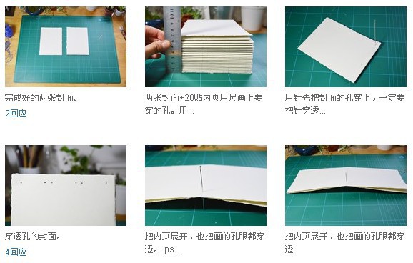 两张封面+20贴内页用尺画上要穿的孔。用铅笔画。