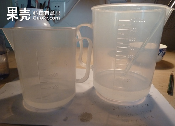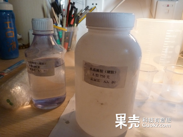 最好有烧杯或者可以量取液体的东西,这玩意一定要比例准确,混合后才会变硬。