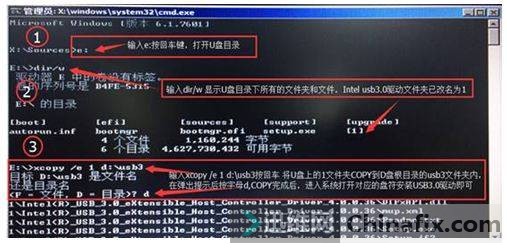附关于暗影精灵-安装系统的问题,我们的技术文档已经非常清楚,安装win 7 系统需要参考 intel 第六代处理器安装win 7 的文档;但是注意,用户在安装的时候,在运行到最后copy 3.0驱动时候,就是如下:如果最安装完系统后,笔记本电脑所有的USB接口都无法识别USB设备,请将步骤1中下载好的Intel USB 3.0驱动程序解压缩后改文件名为1之后COPY到系统安装镜像的U盘上,在安装系统到分区界面时,按Shift+F10调出命令提示符,通过Xcopy命令将USB3.0驱动文件夹COPY到硬盘上,重启后进入系统直接打开名称为1的文件夹,直接安装USB 3.0驱动即可。用户发现驱动无法copy成功,安装以后找不到驱动,用户表示正确命令应该是 xcopy/s /e 1 d:\usb3PS:此方法以验证可以正常使用,但有2点限制1.win7必须sp1以上版本2.非6代cpu主板不适用