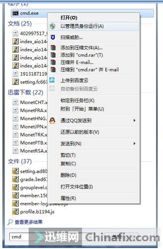 ⑥接下来就是将驱动加载到boot.wim文件的过程了,打开管理员身份的命令提示符(在左下角点开始输入cmd,在cmd.exe的图标上点鼠标右键选择以管理员身份运行)