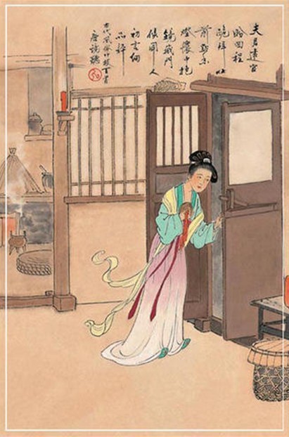 怀中抱镜藏门候,闻人初言细品评。