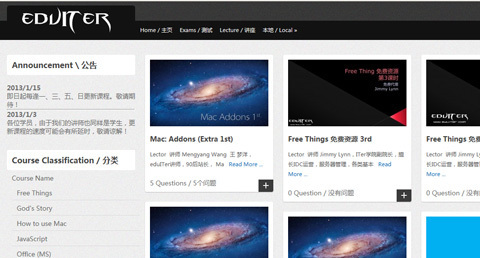 关于网站的盈利模式,何凌瀚说,这是个耗费了他无数脑细胞的问题,他正在考虑线上收费或线下教学的可能性。eduITer是去年10月份正式上线的,他说,最迟今年暑假会推出带有学员管理与选课功能的新版本。