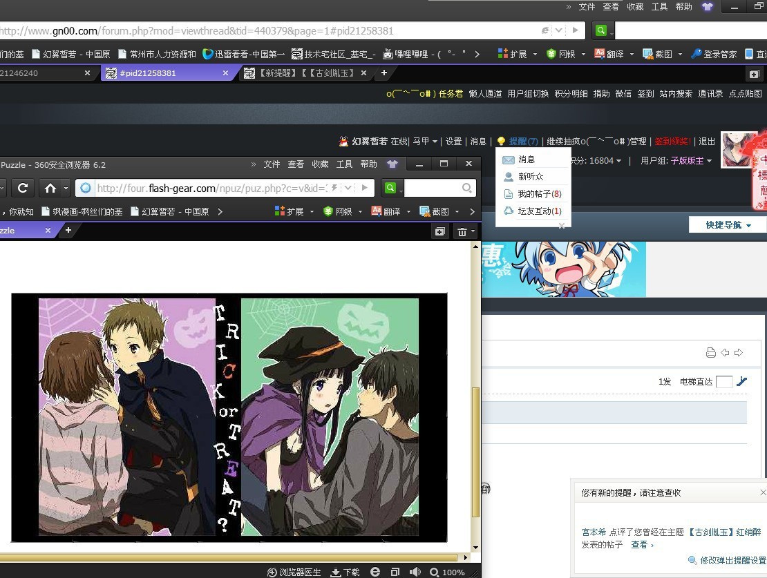②开启两个浏览器窗口,把你完成的拼图和技宅信息栏截在一起