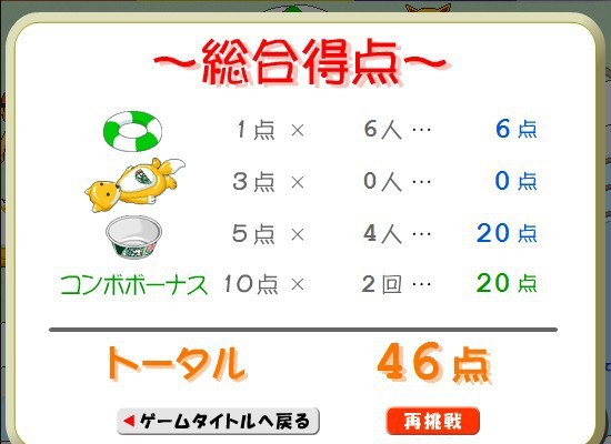 或按空格键操作跳人到游泳圈和跳入大盆或玩偶上,根据速度和物品会有不同的分数,不成功的人只能下去休息,成功的还可以继续跳,所有人失败后会总结点数,试下你能跳多少点[/fold]