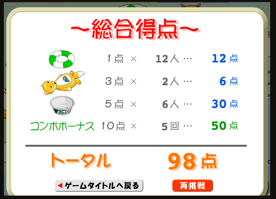 或按空格键操作跳人到游泳圈和跳入大盆或玩偶上,根据速度和物品会有不同的分数,不成功的人只能下去休息,成功的还可以继续跳,所有人失败后会总结点数,试下你能跳多少点[/fold]