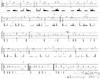 吉他谱是在第一排的这是协奏谱第一排:吉他谱第二排:架子鼓谱第三排(大括号那排):钢琴谱吉他走的是主音即人唱的部分