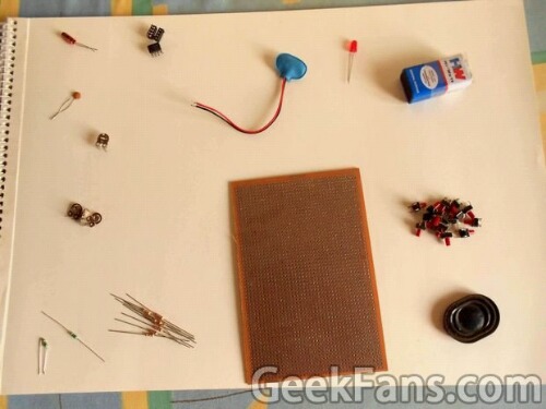 这里使用了一块很大的洞洞板,目的是把电池和扬声器都放上去。你也可以选择一个小一点的。